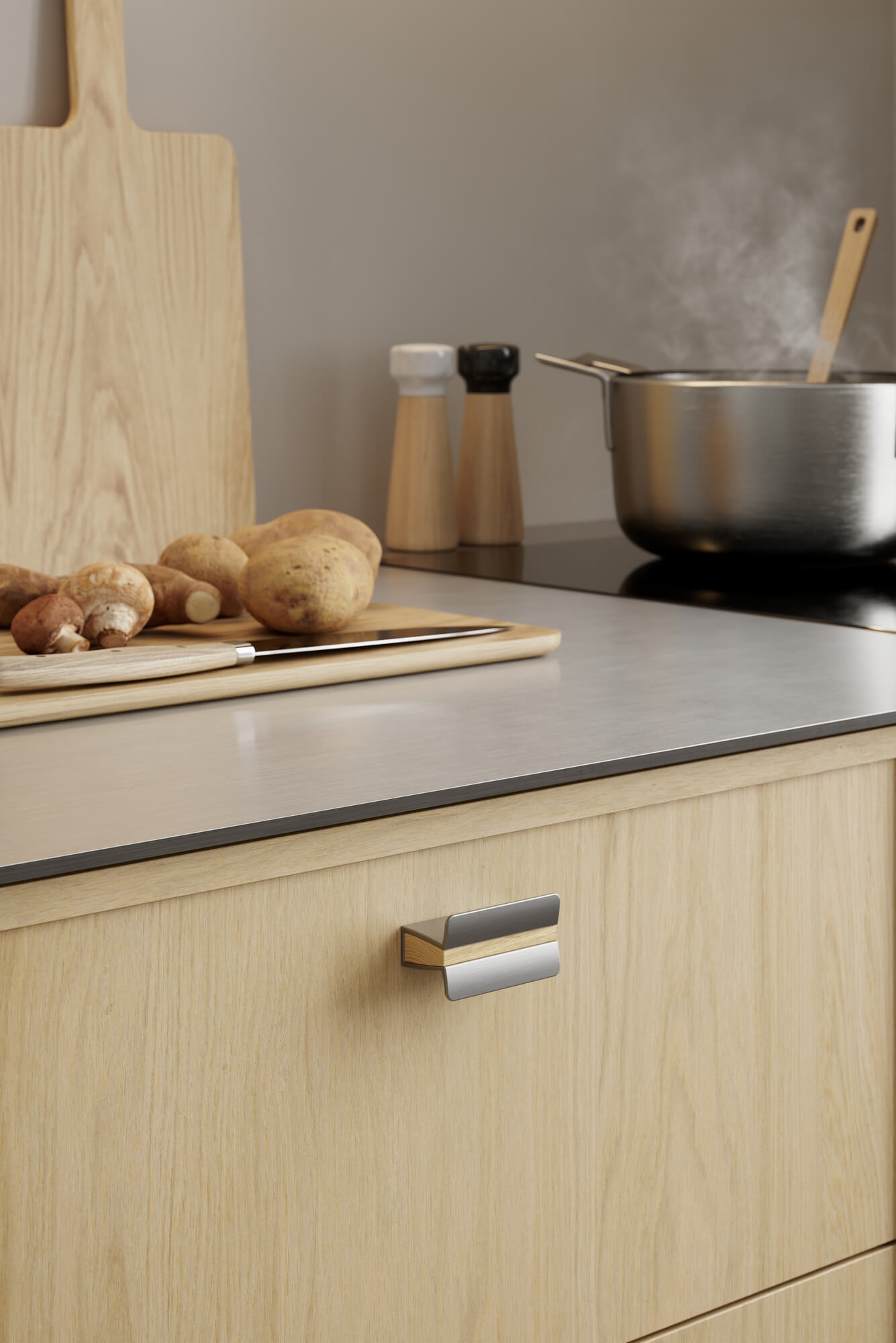 ידית Papillon ניקל מט מוברש/עץ אלון טבעי – 32 מ"מ