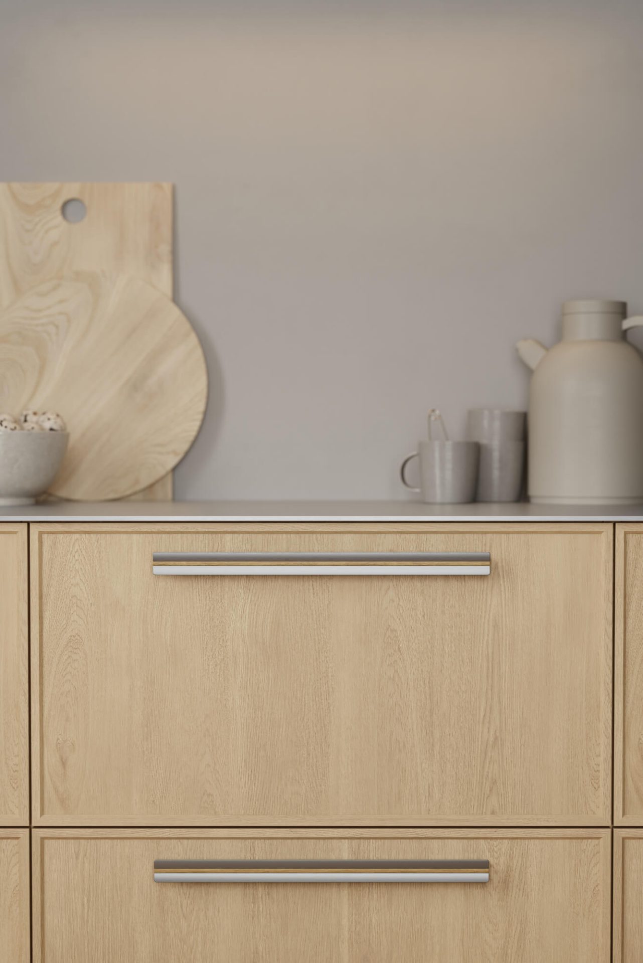 עמוד הבית ידיות ידיות למטבח ולריהוט ידית Papillon ניקל מט מוברש/עץ אלון טבעי – 320 מ"מ